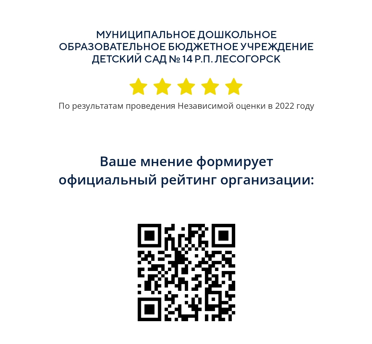 Вы можете оставить мнение о дошкольной организации на Официальном сайте для размещения информации о государственных (муниципальных) учреждениях (ГМУ, https://bus.gov.ru), чтобы оценить условия осуществления образовательной деятельности.